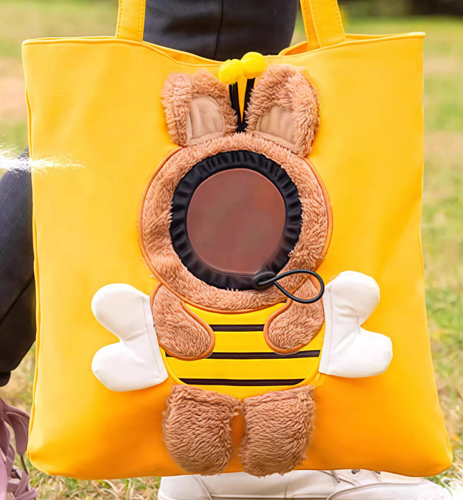 This bee bag is a game-changer for my nervous cat! He used to panic in other bags, but here he just snuggles up. The material is plush, the bee ears make everyone smile, and the drawstring lets me get the right fit. Took him to a picnic, and he stayed calm the whole time. Highly recommend!