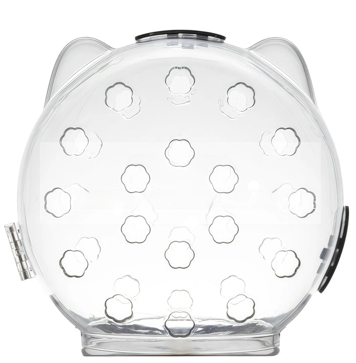 My cat Luna HATES wearing anything, but she didn’t even fight this! The clear dome lets her see fine, and the paw prints are so cute. Stays on well with the black strap—perfect for keeping her from licking her stitches. Total win!