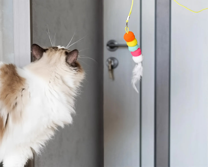 Solves the problem of obesity and depression in indoor cats caused by lack of exercise. The hanging design requires cats to jump and stretch to catch the toy, naturally burning off excess energy while playing. It exercises physical coordination and flexibility, helping maintain a healthy physique and stable mood.