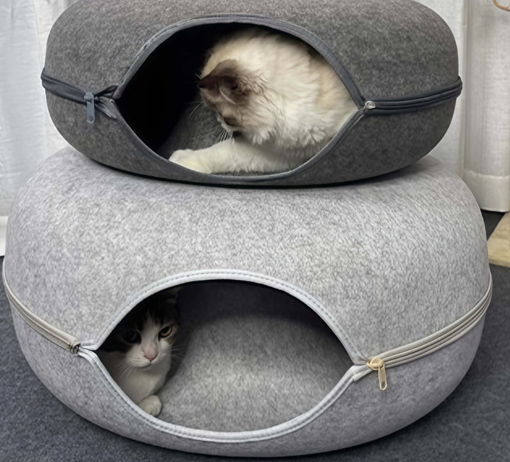 Does your fur kid always love squeezing into couch crevices or curling up into a ball to sleep? Worried about them not sleeping warm enough or getting bored while playing? Donut Bed gets cats so well! A circular felt soft bed—the concave side is a warm sleeping nest, flip it over and it becomes a small tunnel—curling up and purring before bed is super cozy, and waking up to zoom through the tunnel is totally crazy fun! One item does the job of two—you save money on buying toys, and watching them show off is so heartwarming~Grab one now to give your fur kid double the fun!
