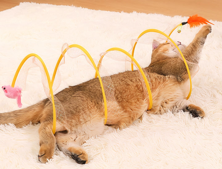 My cat’s a natural hunter, and this tunnel hits the spot. She’ll stalk the feather like it’s prey, then curl up inside. The mesh is safe, and the yellow rings hold up well. Happy cat = happy me!