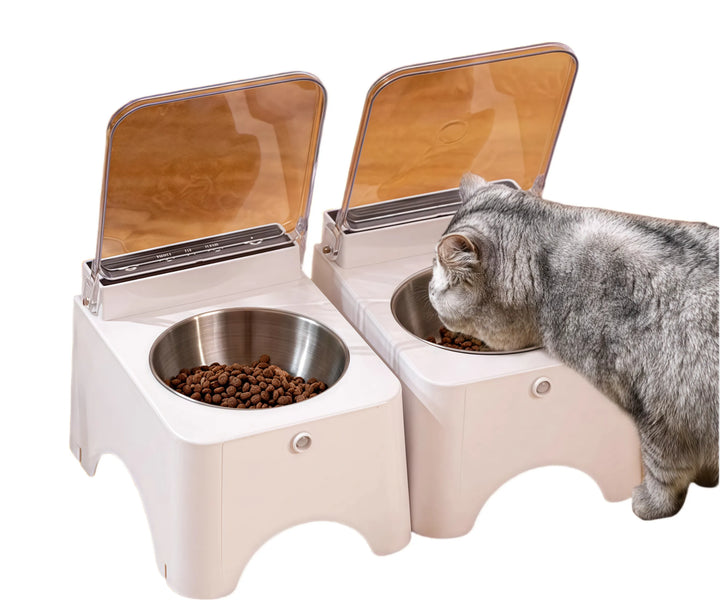 I love the clean white design—it fits right in my living room! The best part? No more flies or bacteria getting into the food. My kitten, Mochi, eats happily from the stainless bowl, and I feel good knowing her meals are safe. Such a smart buy for cat owners!