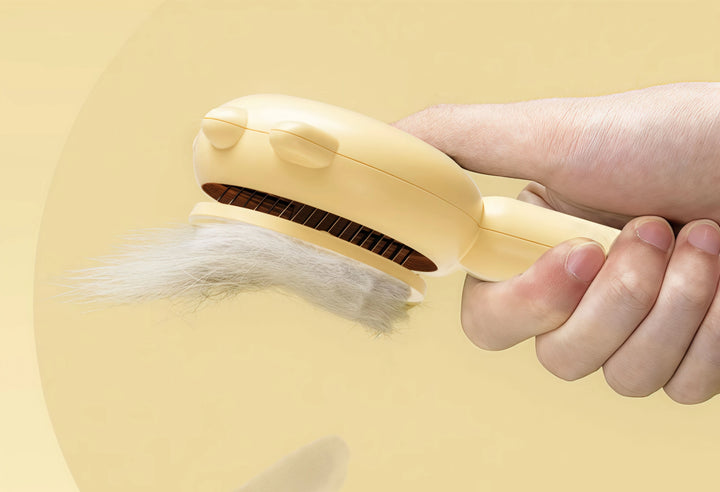 Solving the pain point of traditional brushes where hair gets stuck in the bristles and requires manual picking, the other side is equipped with an orange circular cleaning button. A light press ejects residual hair—no additional tools needed. It quickly cleans the brush, keeps it hygienic, and saves grooming time.